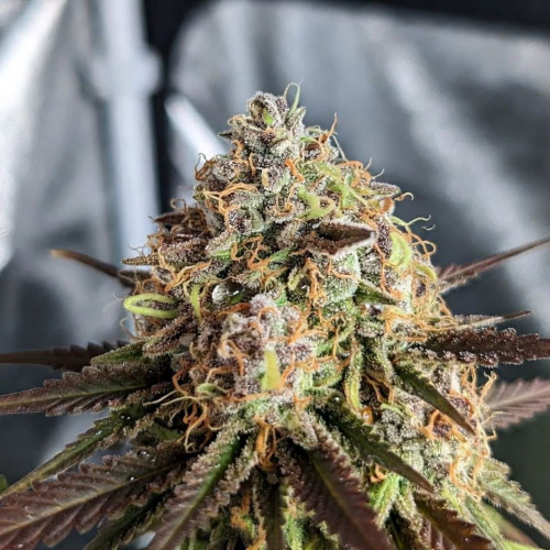На стадии вегетации Dark Phoenix демонстрировал стремительный рост, его побеги развивались энергично, особенно в первые недели, когда растение устремлялось вверх, формируя крепкий центральный стебель и мощные боковые ответвления. При этом его высота оставалась в умеренных пределах, позволяя развивать его в помещении. Однако для оптимального контроля за формой и равномерным распределением света применяли техники LST, топпинга или скроггинга — куст благодарно откликался на тренировки и обрезку. Со временем крона растения становилась широкой и хорошо сбалансированной, а боковые ветви активно догоняли главный стебель. Период цветения длился в среднем 8-10 недель и сопровождался яркой трансформацией растения. Уже в начале этой фазы появлялись выразительные предцветы, со временем они меняли белый и светло-зелёный окрас на более пёструю гамму. Постепенно гроздья соцветий сливались в вытянутые колы, которые могли охватывать почти всю длину ветви. Цветы были особенно выразительными — крупные, смолистые, с плотной структурой и характерным блеском трихом. Во время цветения оно излучало мощный аромат, который требовал использования фильтров в закрытых помещениях. В зависимости от условий и генетических нюансов, отдельные экземпляры удивляли яркой палитрой: от темно-синего до почти черного цвета, особенно в прохладном климате. Созревание в ауте к середине / концу октября.